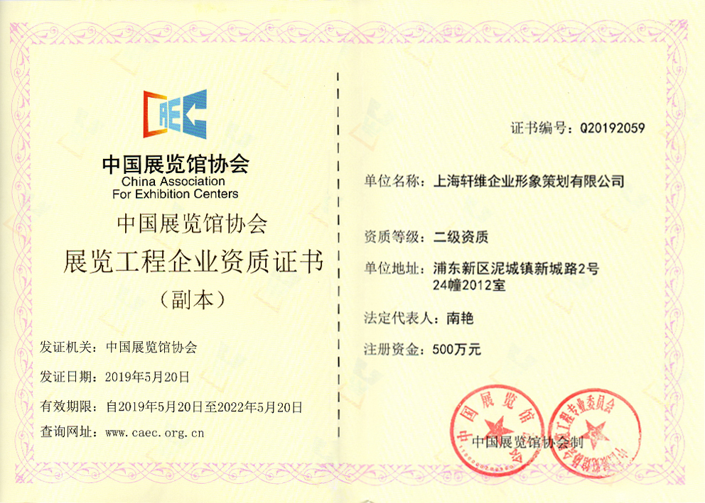 上海會(huì)展行業(yè)協(xié)會(huì)壹級(jí)資質(zhì)